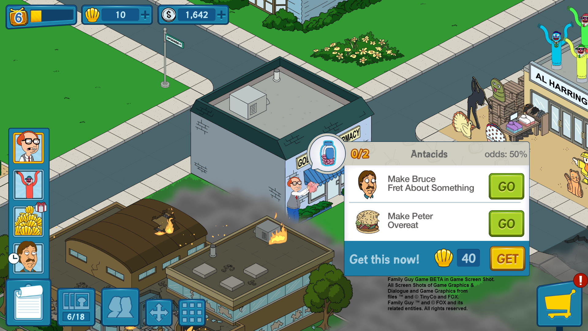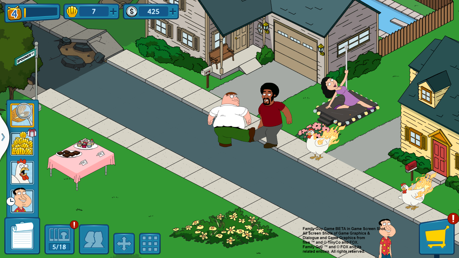 One of the advantages to being a blogger for an already HUGE mobile game is you make friends all over the world who share your addiction to the games. In the case those friendships come up huge when you’ve got friends in other parts of the world able to access the BETA Version of the Family Guy Game and send us back screen shots and feedback! So you can bet we’re doing a TON of stuff behind the scenes to get ready for the launch of FGG that’s for sure! However, I wanted to give those of you, like us here in the US, a little preview of some actual elements of game play.