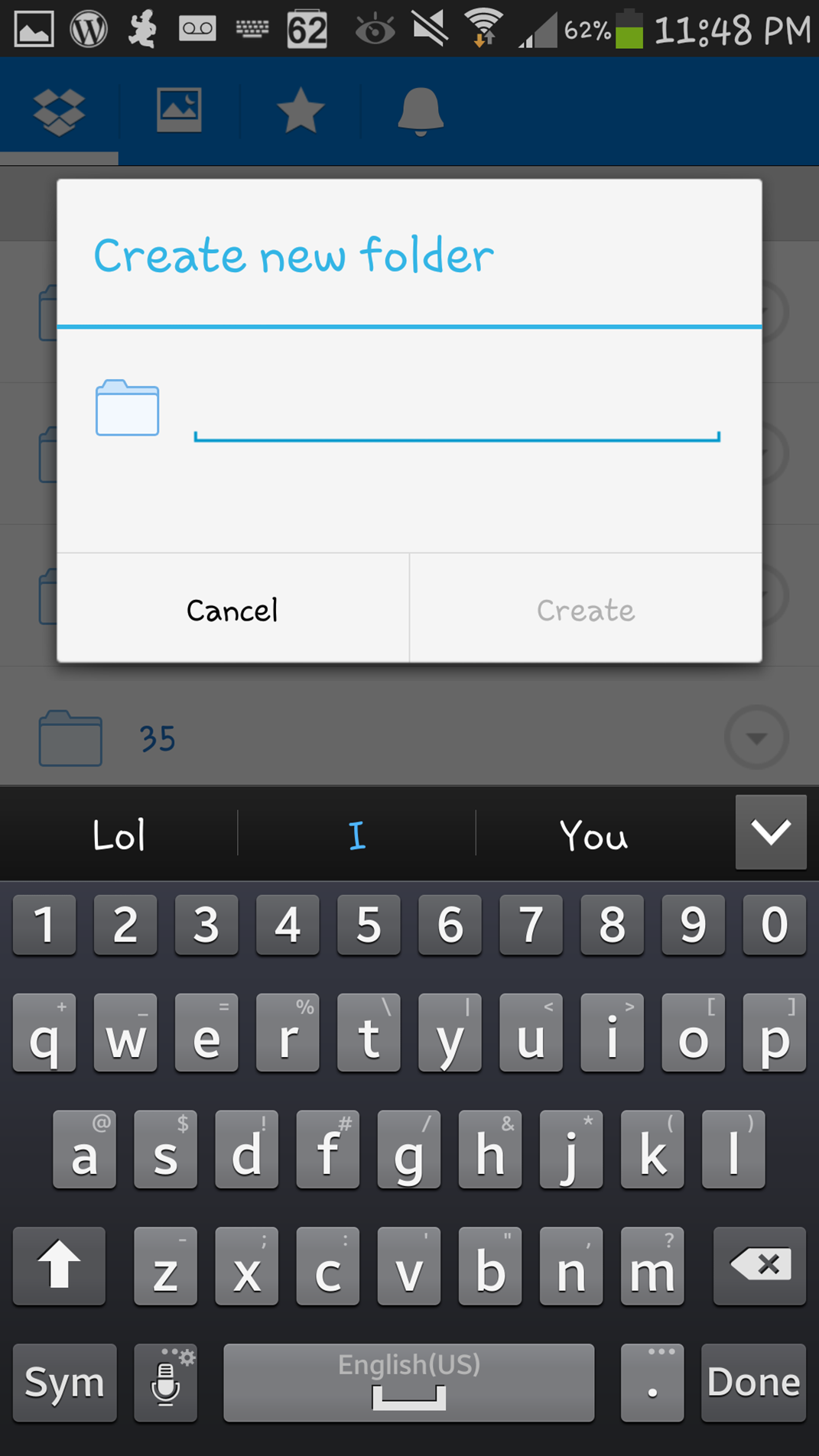 A “Create New Folder” box will appear on your phone. Type in what you’d like to call your new folder, for mine I labeled it Family Guy Screenshots, and tap create.