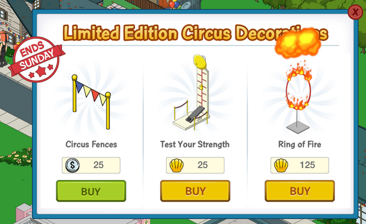 Extremely annoyed that they added so much premium stuff. And the fact that you need premium items to gather the items other than splatting clowns is a little stupid as well. Also, in my character shop, on the far right is mayor west and the city hall, was that there before? Because his icon isn’t on facespace and I don’t remember it being there at the start