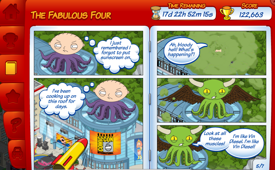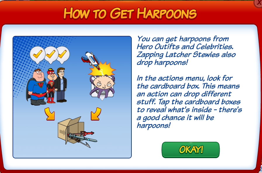 There you have it, the breakdown of the new incarnation of Giant Stewie. What do YOU think of him? Have you hit the streak yet and got the Movie Set? Do you have a favorite task that earns Harpoons? Are there any other Characters you wished had a Harpoon Earning task? Let us know.
