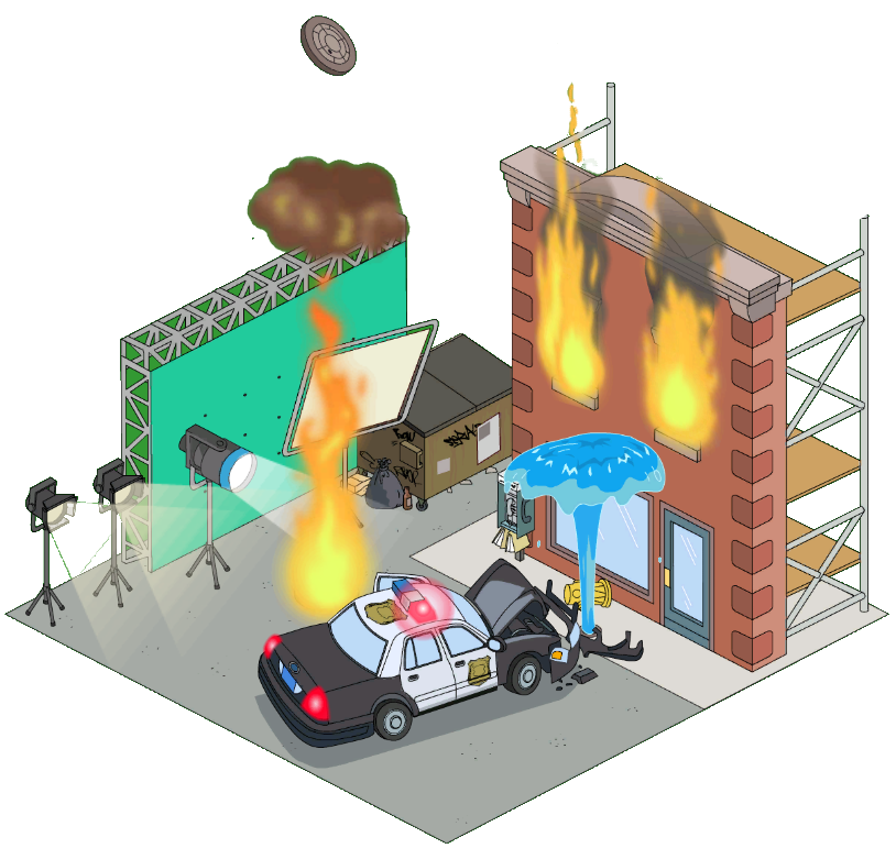 Here is what the Action Movie Set looks like… in action. There are flames and fire a blaze, the manhole cover is blown up then lands back down, the lights on the car are active, as well as the water out of the fire hydrant bursting where the cop car hit it. (For those of you wondering, yes the cop car hitting a hydrant does remind me of another one in a “Clown Land”. Lol.)