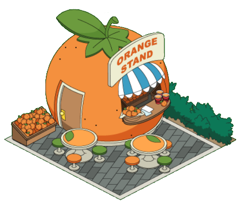 Cute Li’l Orange Stand– $1,500, 6hr Build. Earns $60, 40xp/12hrs