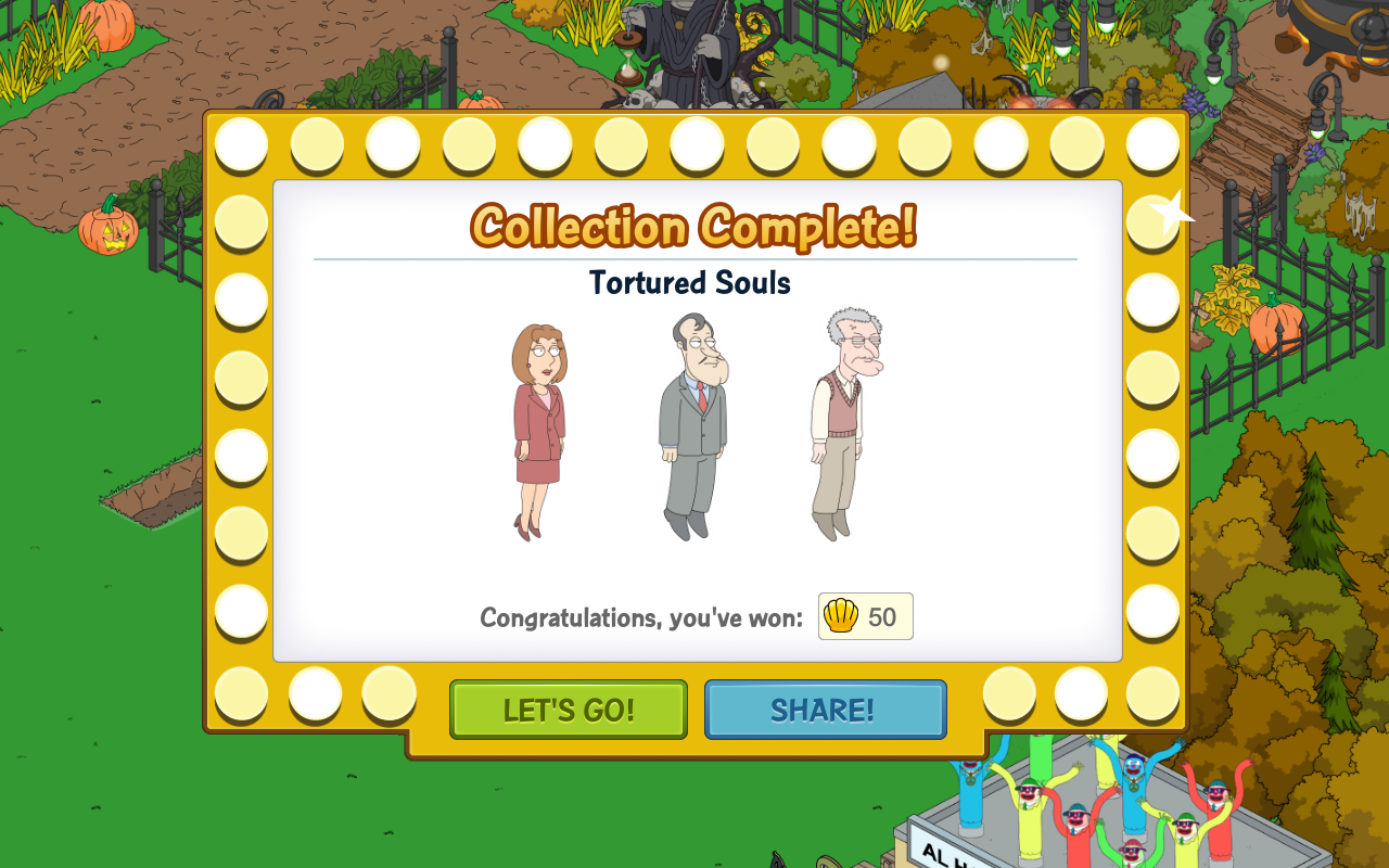 Francis returns to Quahog via the Halloween Event. You’ll find him 6′ deep and you’ll have to dig him up. It’ll cost you 250 Spirit Vials and take 12hrs to dig him up. Once you’ve freed Francis you’ll have FIVE DAYS to unlock him or he’ll go back into his grave never to be heard from again. So make sure you’re ready to unlock him before you grab that shovel!