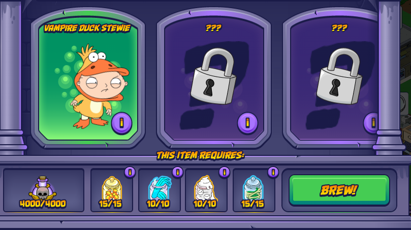 To add Vampire Duck Stewie to your Quahog you’ll have to brew him.