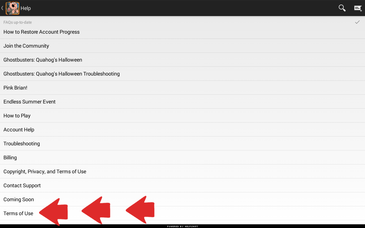 Let’s first of all look at TinyCo’s Terms of Use. You can find it quite easily right within your game itself.
