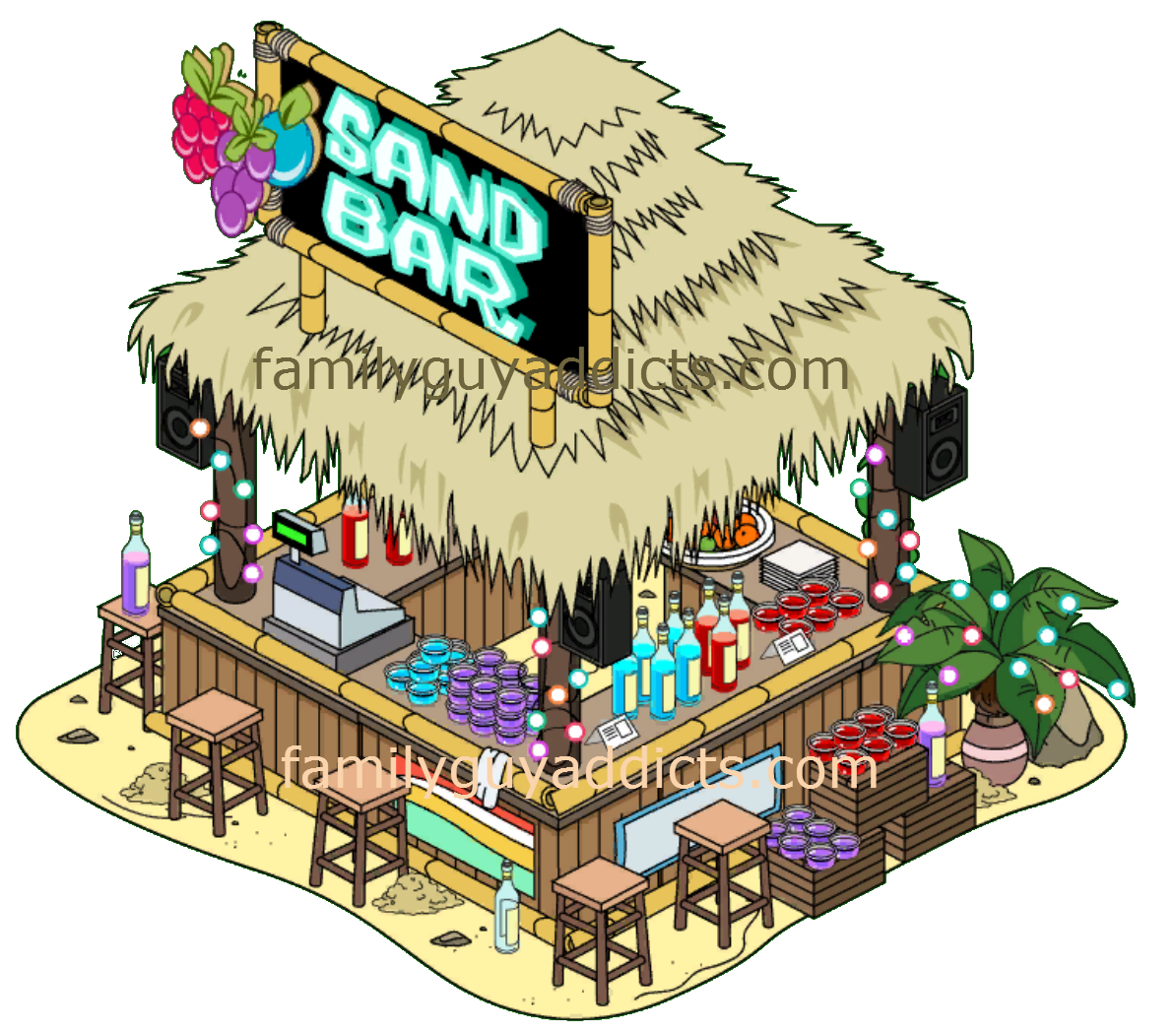 Sand Bar- 100 Clams. Earns $10, 5xp/ 4hrs. Always drops Pecan Sandies.