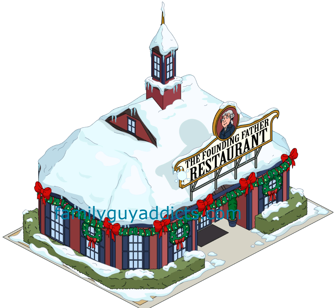 Christmas Founding Father- 50 Clams. Earns 10 cookies, 2 HC/ 6hrs. Always drops an item needed for Angel Bruce.