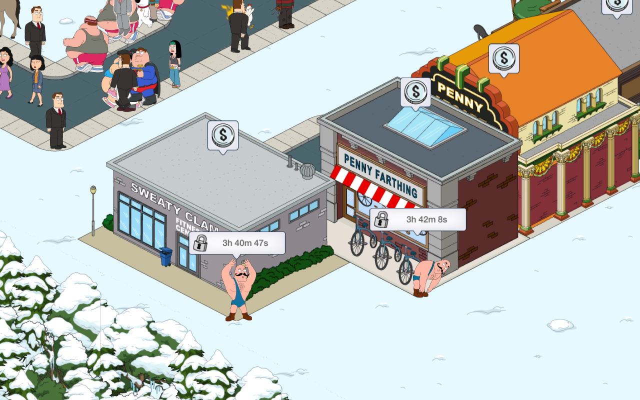 Love the animation on Phineas and Barnaby’s dual “Penny Farthing” task. Bought all the freemium stuff to make a little old-timey mini-district, plus the Boxing Gym to get more joggers (but the building itself is kinda blah). Would’ve preferred to get the Bulge building if it dropped something, but it’s cheap enough that I just might snag it anyway before time runs out.