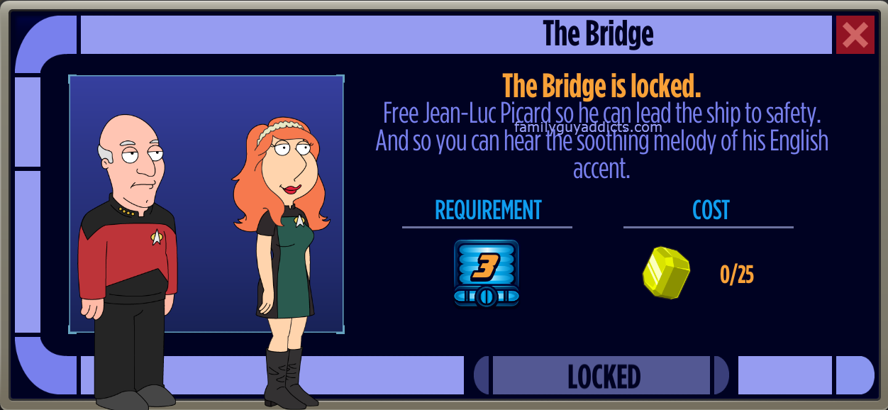 Bouncing on by for some help on the options of the new set of rooms offered once you unlock The Bridge aboard the Star Trek Enterprise.