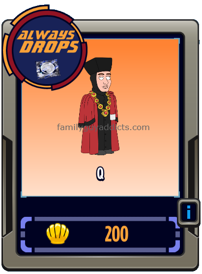 Q is probably one of my favorite “side” Characters in Star Trek: The Next Generation. His tasks are classic things you would see Q do. I have not had him too long, but he already is helping out to get Vulcan Quagmire a LOT. Not to mention getting him also got me Klingon Meg.