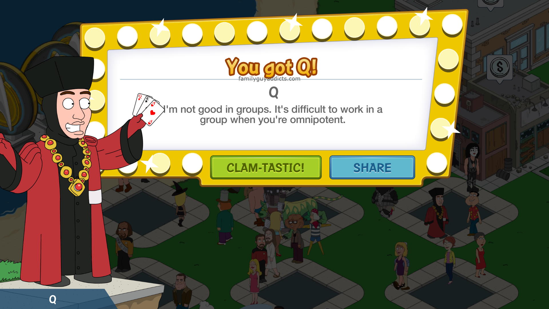Agreed! I’m usually a premium player and have got just under 500 clams burning a hole in my pocket but I haven’t spent a penny on this event as I don’t like Star Trek but have managed to unlock everything so far just about, only a few condoms away from Quagmire and 2 jabby things(forgot their name) for that new doctor lady..Should have both by tomorrow and this is by not spending any clams! It all can be done freemium at the minute so keep the faith people!