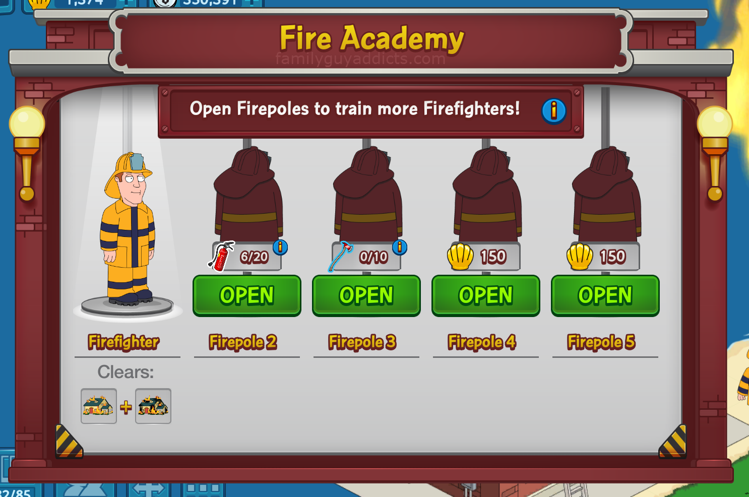 First take a look at the Main Screen of the Fire Academy. If there is already a Firefighter on your Open Firepoles, you will need to wait until you use them to Battle or Put out a Building Fire or Unlock/Open another Firepole.