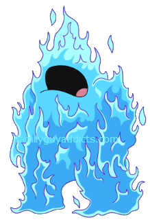Ha! I was wondering why the water guy was spitting fire. He is a blue flame. Duh!