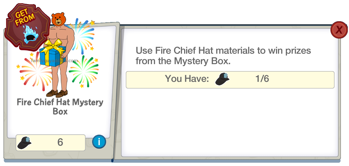 FYI… Once you have collected enough Fire Chief Hats to open on box, the Extreme Fire Creature will drop coins until you use the 6 to open one Mystery Box. Once you open one, they will go back to dropping Fire Chief Hats again.