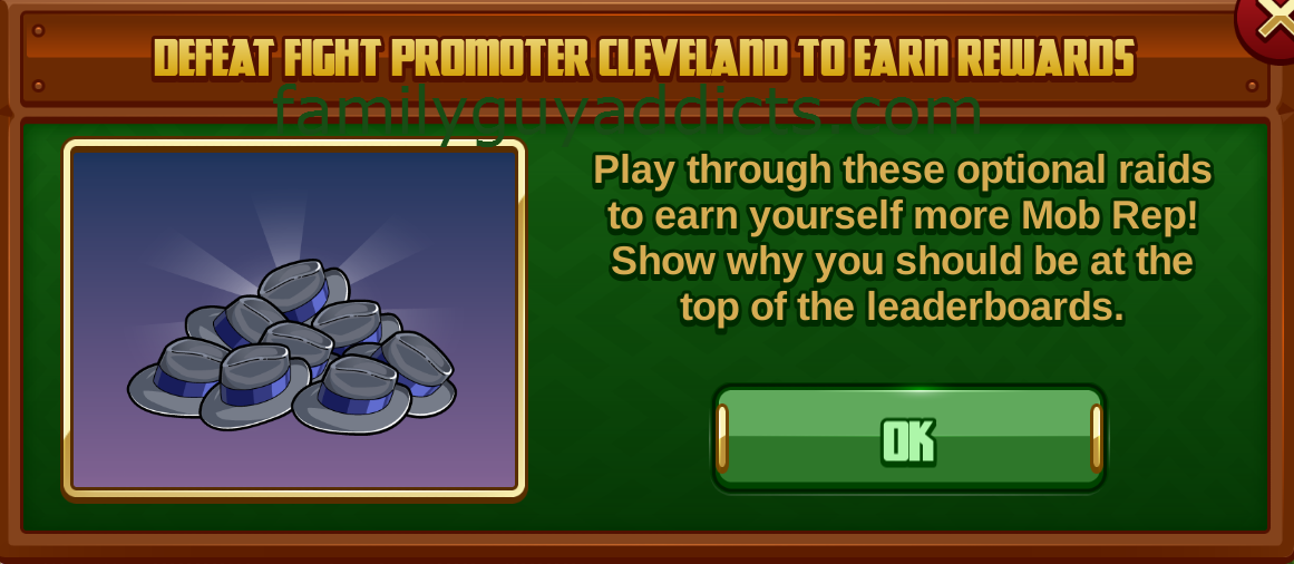 - “The Blackjack Obstacle”: : You will have Lois Sing Lounge Act (1hr) AND Mort Invest Money Wisely (1hr). Rewards 2 Mob Rep.