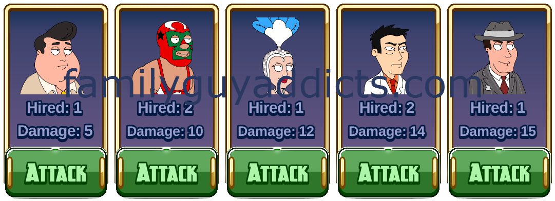 Hire Goons: This is the area you will want to pay close attention to. It is how you can use strategy to get the most out of each attack depending on WHO you have available. NOTE: You will ONLY see the Goons you currently have active in your game. (More Info Below)