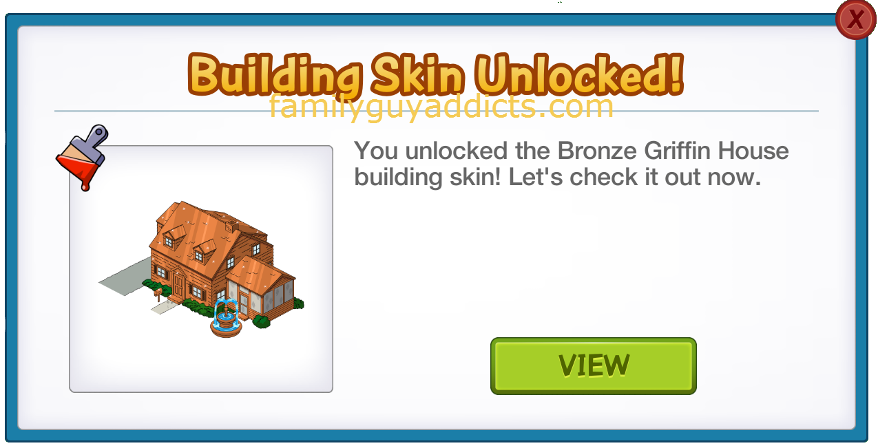 Tapping on the Bronze Skin created a Pop Up in the game informing you of the Building Skin Unlocked.