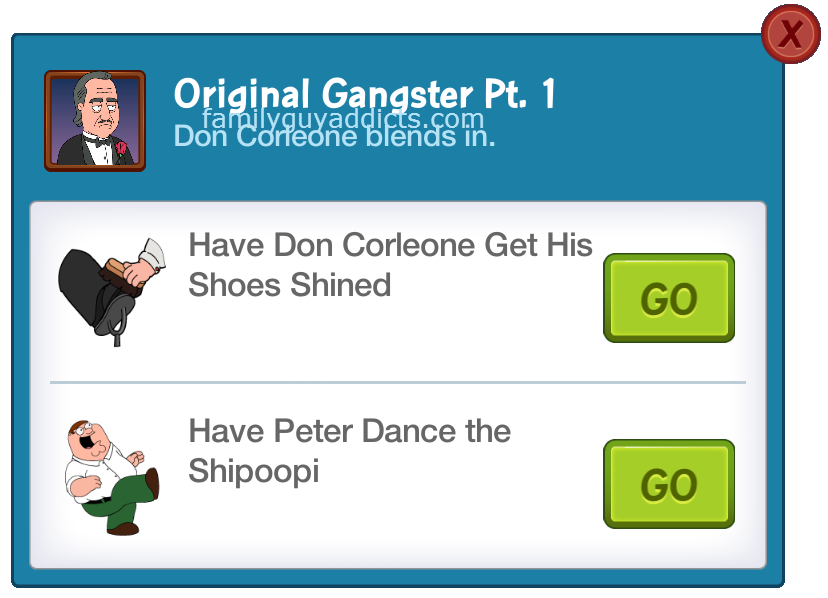 You're a Winner! Don Don Corleone: Once you see the Winner Pop Up, you will go into your game and notice that Peter has a ! above him. Tapping on him will help you locate The Don. First it will open a Task.