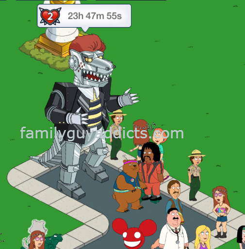 As soon as the Mecha Astley appears on your Quahog Streets, he will have a Heart Icon with a Number on it and a Timer appear in a Bubble Box above his head.