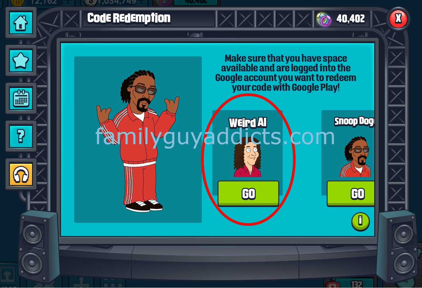 You will now be taken to the Code Redemption Event Area. Here you can see all the Albums from the Artists YOU unlocked into your game. Scroll right and left to see them all. Tap on “GO”, to see if you already got the Album.