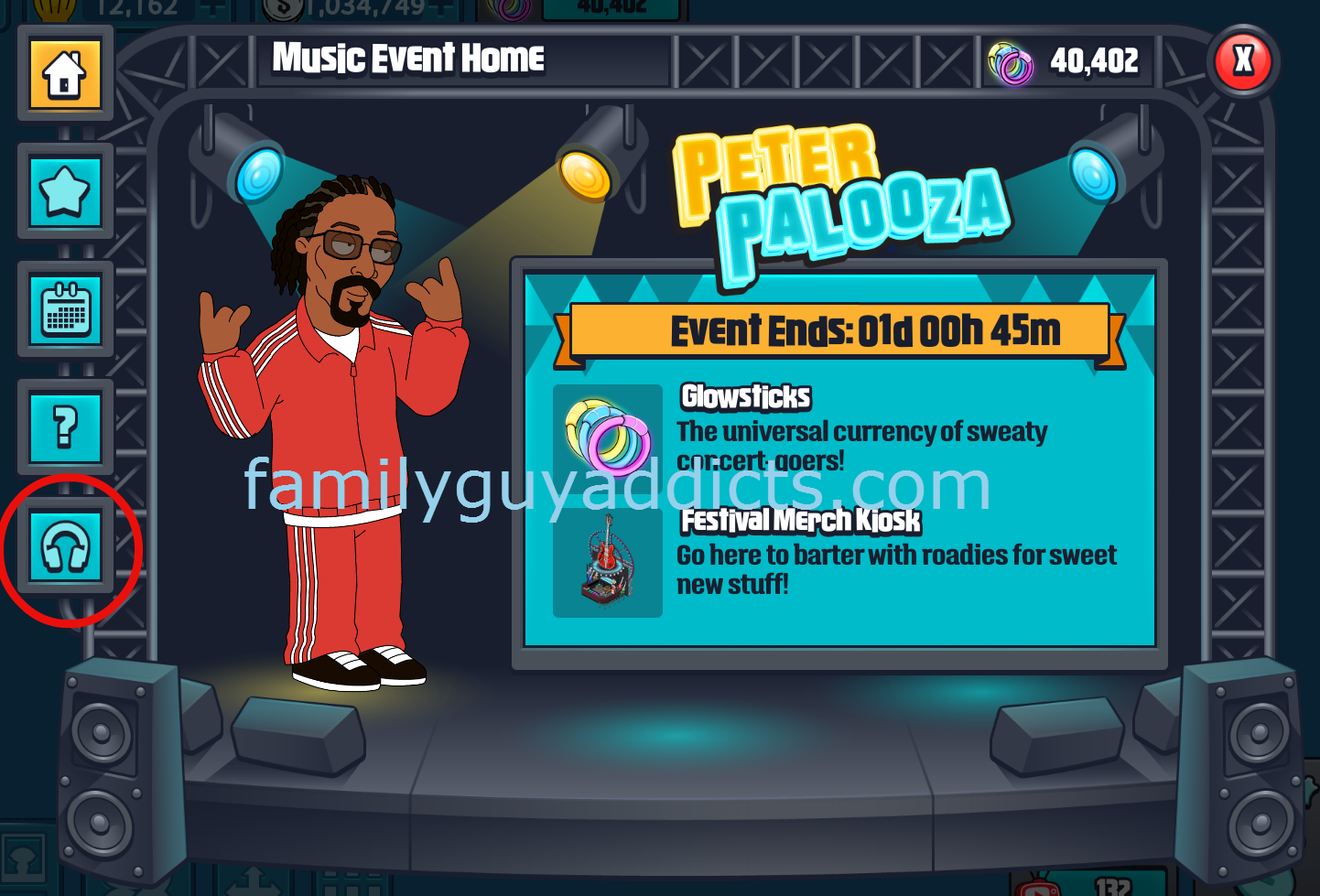 You will be taken to the Main Pop Up For the Event. Here you can see the time left on the Event and off to the Left Side, all the Icon Options for various parts of the Event. Locate the Headphone Icon for Code Redemptions and tap on it.