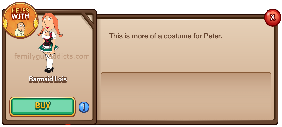 With this fun Septemberfest Mini Event dropped into our games, we also get some New Characters/ Costumes. There is also some occasional Premium Character Costumes. Like Barmaid Lois!