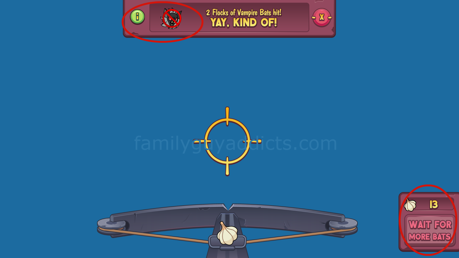 Your Garlic Launcher Screen will actually tell you. You can see the Bat Image crossed out and “WAIT FOR MORE BATS” by the Garlic Bombs Count Icon in the screen.