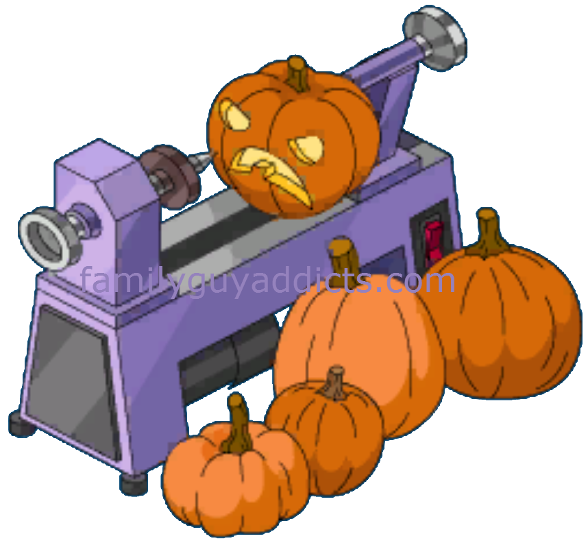 Pumpkins (ALWAYS): Slasher Bait Lois Do Cheerleader Poses OR Death Kick Back OR Chucky Play With Knives OR Chris Eat a Large Ham OR Slasher Cat Cave OR Hot & Muggy Coffee Shop OR Jack-O-Lantern Lathe OR Pumpkin Pyramid