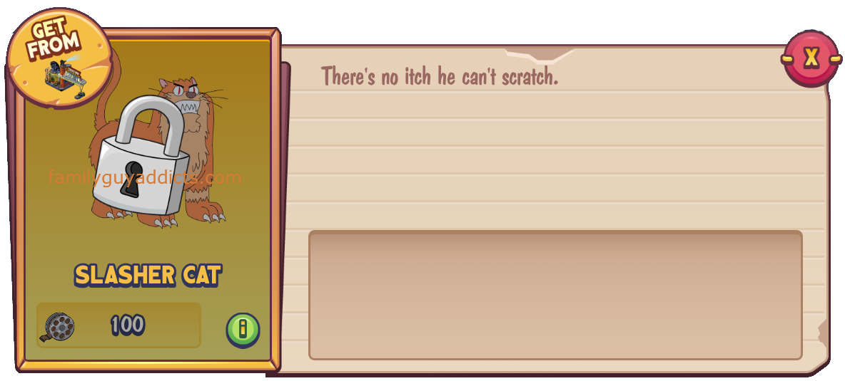 Tapping on the Icon brings the Character live into your game for use. More info on Slasher Cat vs Slasher Cat NPC (the one that chases Lois) HERE