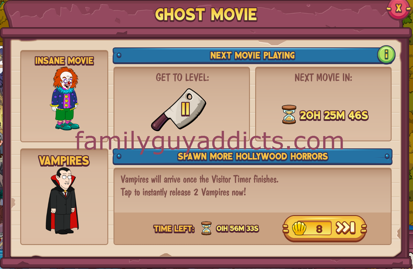 Unless you have a big stockpile of consession stand items, reel earning is very slow this phase. My current options are 7 licorice for 5 reels which takes 3 hr 45 min to make the cannons and that will earn enough to trade in twice so 10 reels. Next I have 70 popcorn for 10 reels which would take 7 hours to do, less if you can save Lois from slasher cat. Then 75 soda for 30 reels. That will take 10 hours, less any soda you might get from bats. 20 chocolate for 10 reels which would take 6 hours. 5 chocolate and 70 popcorn for 12, which would take 10 hours. And 40 chocolate and 10 soda for 23 reels which would take half a day to get. Since I’ve been behind the whole event I haven’t had a chance to stock up on anything. I really don’t see how I’ll earn enough at this pace.