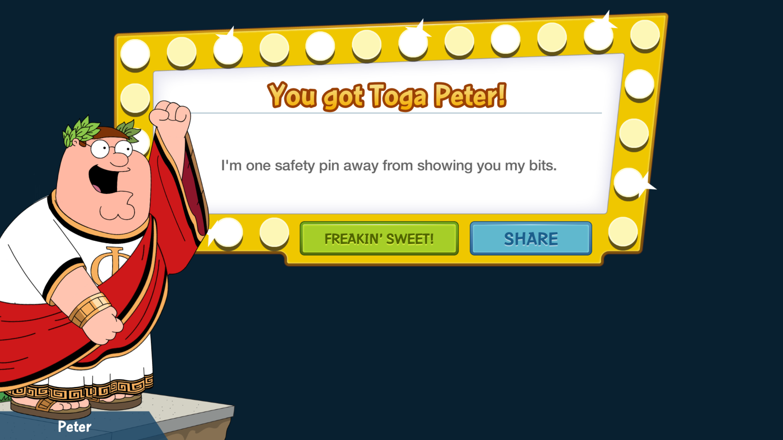 With this new Greek Life event, we also get some new Character’s Costumes. Like Toga Peter!