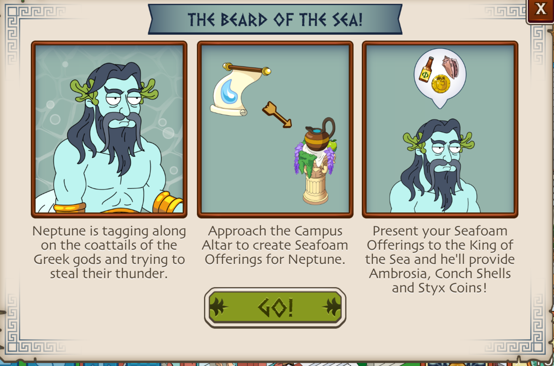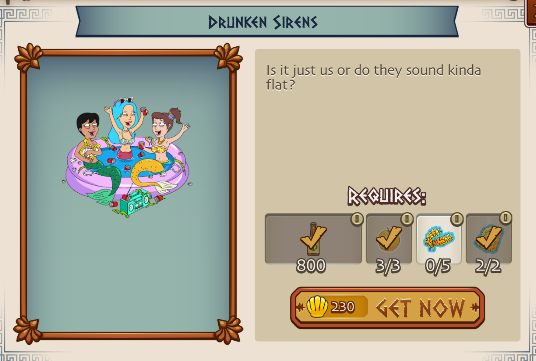 About 2 days left hopefully will get Neptune about 1500 ambrosia away and a few fleeces. Gave up last week with hades but want this one more ☺ What’s the downtime on Neptune for trading?(sorry if already been asked) Ive done 4trades and have juyst over a day left on the timed challenge and hoping he will be back for more before that ends! I prefer his cuz only half hour to make so much easier ☺ and need more shells for billy flinn 😀