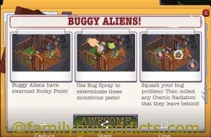 I’ve not had any Cosmic Radiation from Buggy Aliens either. TinyCo haven’t put a drop rate on it, but Bunny is feeding back information to TinyCo