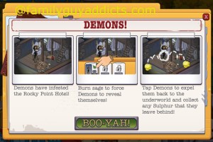To release demons you just tap on the magnifying glass and this will start the investigation of the room. It takes 1 hour to investigate and once complete you will see a check mark. By tapping the check mark you will find out if your investigation was successful. Now be aware you DO NOT always release demons, sometimes your investigation fails, when this happens you will only get a reward of a magnifying glass. However when you’re investigation is successful you will see a screen that shows how many demons you have released into Rocky Point.