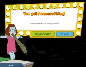 Yes, Possessed Meg has made her way from Rocky Point to Quahog, and she’s leaving a trail of pea soup wherever she goes.