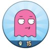 PAC Caroler starts out at his 32 Heart Meter Points. I select Pinky Ghost from the list of Ghosts, moving him around til I know that PAC Caroler is coming TOWARD him and wait till the PAC Caroler turns PURPLE. Once he does, I tap the Check Mark to apply the Pinky Ghost 15 Damage to PAC Caroler.