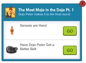 Sensei will appear when you start The Most Mojo in the Dojo Pt: 1. Tapping Go will bring up the Sensei information box.