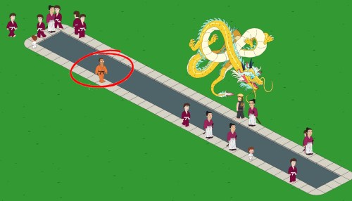 Now once the fight begins you can only sit back and watch how it progresses, you can’t control anything. You may see your Samurai Quagmire land a critical hit on the Sensei and knockout him out straight away, or you may hit him and reduce his health by 6, or you may miss him altogether. And the same goes for the Sensei, he may deal you a critical hit and knock you out, or he may hit you and reduce your health by 3 points, and then again he may miss you completely. Watching the fight you will see what happens, but as I say you can do nothing to influence the way it goes.