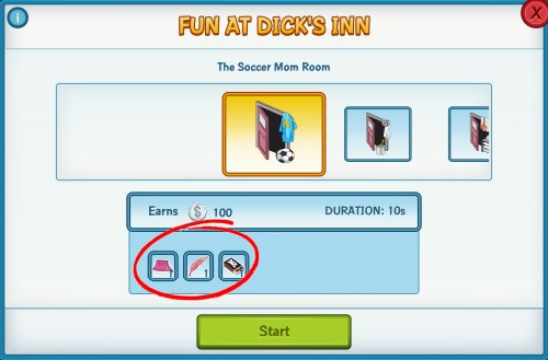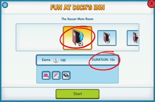 As soon as you tap on Dick’s Inn you will be taken to the Room. From here you can scroll left and right to the various Rooms. Locate the Room you want to go to and tap on “START” to be taken to the full details.
