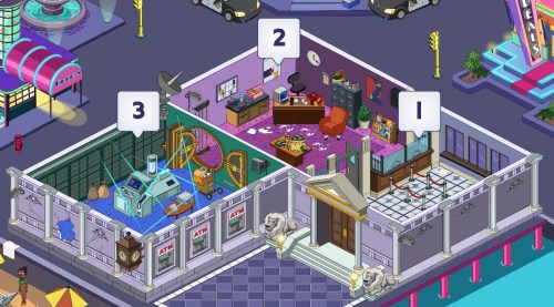 Each Room has a different Cost and can use different Characters that will be used to go on the Investigation and gain Rewards. However they all take the same time to complete, 1 hour and 30 minutes. You send the character/s off, and then wait the 1 hour and 30 minutes to see what they find.  While they are gone, the Characters cannot be used for anything else as they are essentially on a “Task” and vice versa. Each Room has a Guarantee to give you at least 3 Donuts for the Investigation.