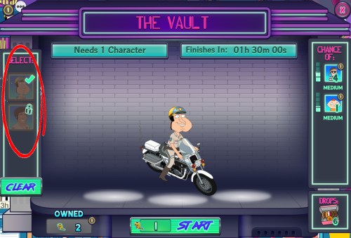 They are: Lois, Miami Cop Peter, Erik Estrada and Chopper Cop Quagmire (premium). Different characters can go on Investigations to different rooms, more on that later.