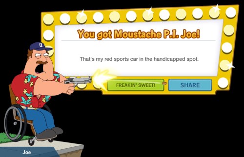 Moustache P.I. Joe is a new premium Character Costume added during Phase 2 of the Quahog Heat event. As with all premiums, it is your choice to determine whether or not he is someone you want to add to your game.