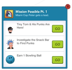 Each Room has a different Cost and can use different Characters that will be used to go on the Investigation and gain Rewards. However they all take the same time to complete, 1 hour and 30 minutes. You send the character/s off, and then wait the 1 hour and 30 minutes to see what they find. While they are gone, the Characters cannot be used for anything else as they are essentially on a “Task” and vice versa. Each Room has a Guarantee to give you at least 3 Donuts for the Investigation. You will find full details on how investigations work in the Phase 1 Investigation post HERE. Bowling Alley investigations follow the same process just with different characters, costs and rewards and I’ll talk about those below.