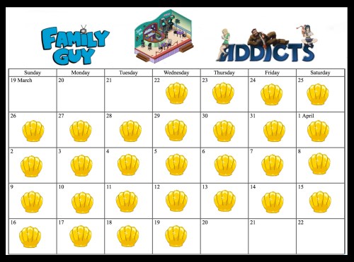 The calendar below shows the days clams will drop from 3/22, I include the first day as the building drops 14 clams immediately on placement in your Quahog, from there on all you need to do is collect every 24 hours, either manually by tapping the building or with Consuela’s vacuum. I am also including the final day as if you purchased it immediately you will get be able get a drop on the final day, but be aware you may need spend a clam or two speeding the task to get the drop before the Bar stops dropping. We will confirm this time as soon as we get it from TinyCo.