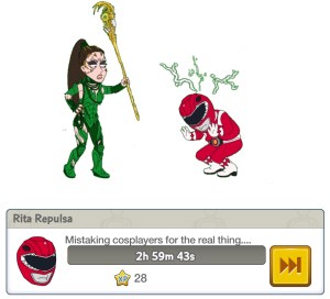 It takes 3 hours to clear each Red Ranger Cosplayer and you can see the progress by clicking on Chris or Rita Repulsa during their task.