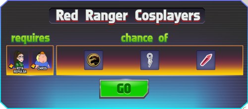 This is pretty simple, you need Chris or Rita Repulsa (premium character) to clear Red Ranger Cosplayers, both have a 3 hour task to do this.