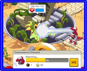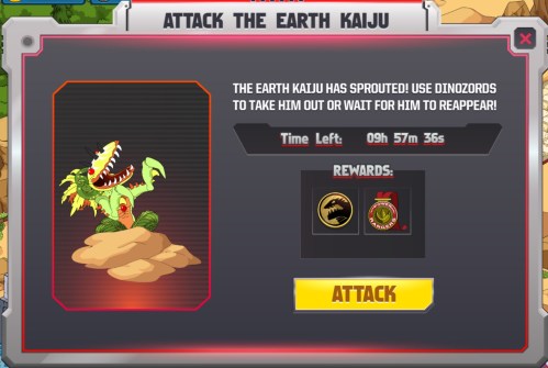 Once your chosen task is underway you will see your Tyrannosaurus DinoZord attacking the Earth Kaiju and clicking on him will show you the tine remaining.