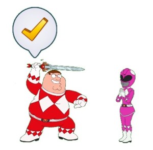 The tasks you’re looking for are: Power Ranger Peter Pose For Pink Ranger Cosplayers OR Rita Repulsa Stewie Stun Pink Ranger Cosplayers.
