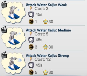 For example for the 2 Heart Meter Water Kaiju, you only want to select the Attack Water Kaiju – Weak (2 Damage) task. This will result in you fully defeating the Water Kaiju for the minimum amount of energy, which for this task is 3.