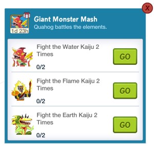Anyway this week’s challenge, if you should choose to accept it, seems a little easier than most, you need to fight the Earth Kaiju twice, the Flame Kaiju twice and the Water Kaiju twice, so both freemium and premium players can do this, and technically it should work in tandem with what a lot of us will be doing right now. And remember fight means attack the Kaiju, you don’t actually need to defeat them, just attack each twice.